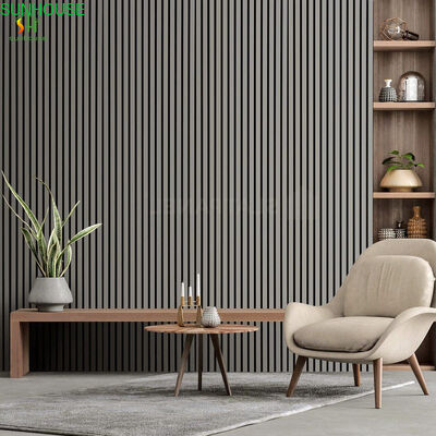 Naturalne PANELY DRAWNIEJNE AKUSTYCZNE ŚCIENNA Nowoczesny pokój dzienny Dźwiękoodporny Panele akustyczne wchłaniające z projektem modelu 3D