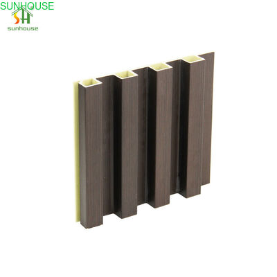 Proces produkcji koekstruzji wytwarza ten panel w dwóch jednoczesnych warstwach: strukturalny rdzeń kompozytowy HDPE i mączki drzewnej zapewnia sztywność i stabilność wymiarową, podczas gdy oddzielnie formułowana zewnętrzna warstwa okładzinowa – nakładana w tym samym procesie wytłaczania – zapewnia wykończoną powierzchnię. Ta warstwa okładzinowa zawiera wyższe stężenie pigmentu barwiącego i dodatków powierzchniowo czynnych niż rdzeń, co zapewnia gęstsze, bardziej odporne na zarysowania wykończenie niż standardowe panele WPC z pojedynczym wytłaczaniem. Wiązanie między rdzeniem a okładziną powstaje podczas wytłaczania na poziomie molekularnym, eliminując ryzyko rozwarstwienia związane z panelami owiniętymi folią lub lakierowanymi panelami z pojedynczym wytłaczaniem.